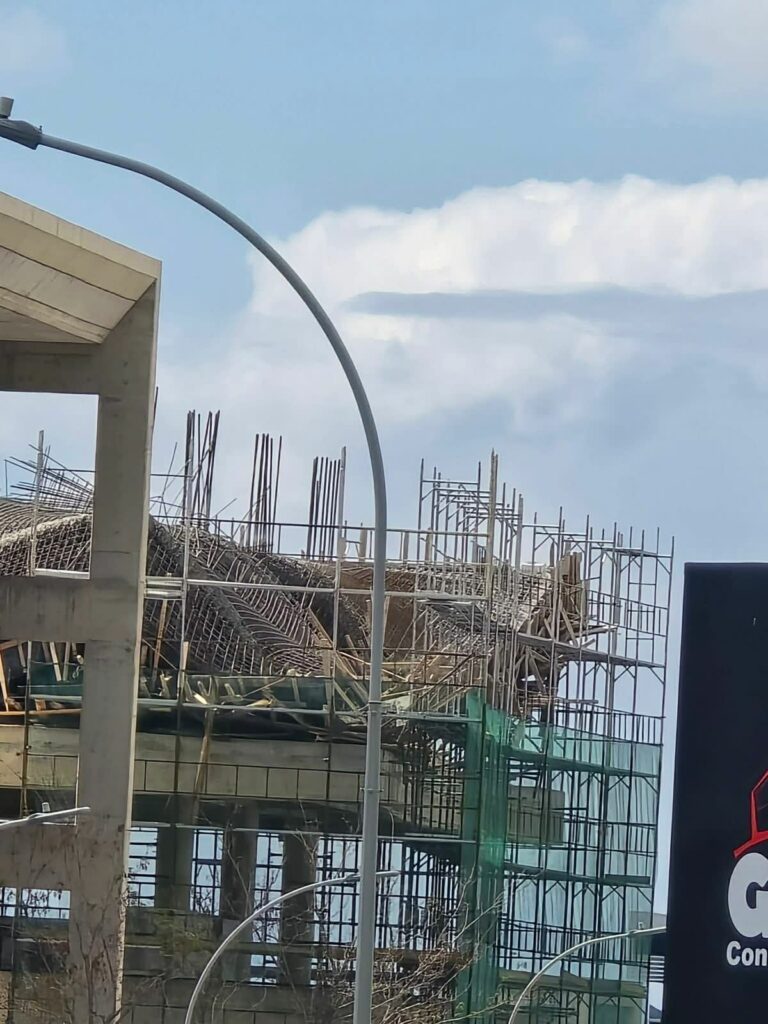 Görgü tanıklarına göre, binanın üçüncü kat tavanı beton döküm işlemi sırasında hava koşulları nedeniyle çökmüş görünüyor.